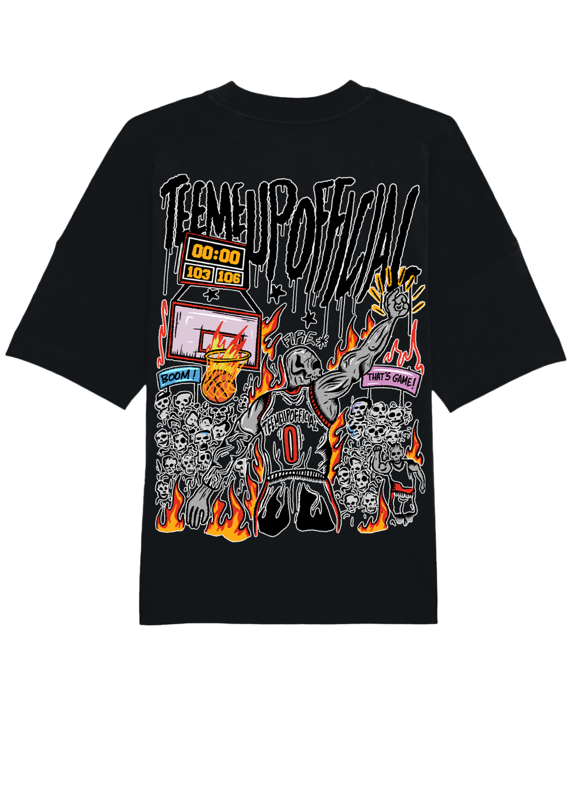 Our signature collection 'Gameday' oversized T-shirt is custom with an amazing high quality graphic illustration design on the back and a sleek 'series 01' TeeMeUpOfficial text logo on the front left chest.